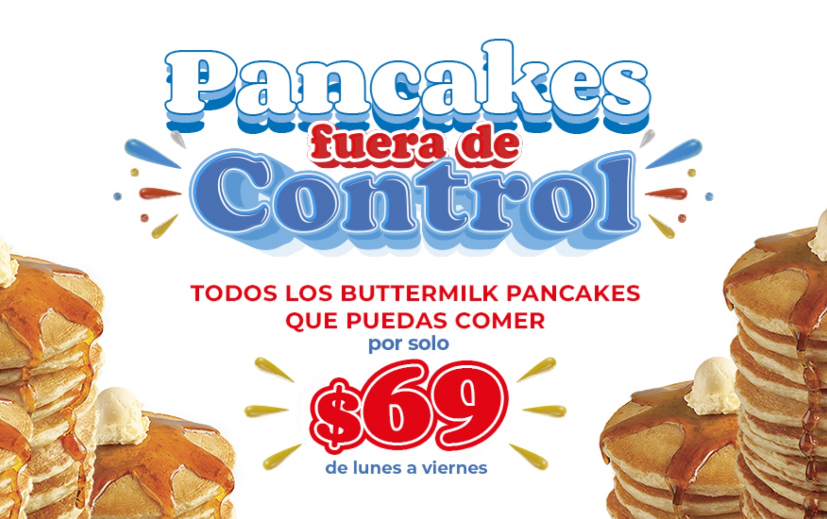 Promoción valida de lunes a viernes del 19 de enero al 8 de marzo de 2026, o hasta agotar existencias durante el horario de operación de restaurante. Participan las siguientes sucursales: IHOP Antenas, IHOP Oceanía, IHOP Lindavista, IHOP Vallejo, IHOP Coapa, IHOP Patio Universidad, IHOP Félix Cuevas, IHOP Pedregal, IHOP World Trade Center, IHOP Santa Fe, IHOP Tepeyac, IHOP Galerías Atizapán, IHOP Metepec, IHOP Satélite, IHOP Mundo E, IHOP Cuernavaca, IHOP Cuernavaca La Selva, IHOP Parque Puebla, IHOP Puebla y IHOP Mérida.