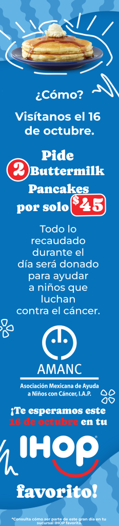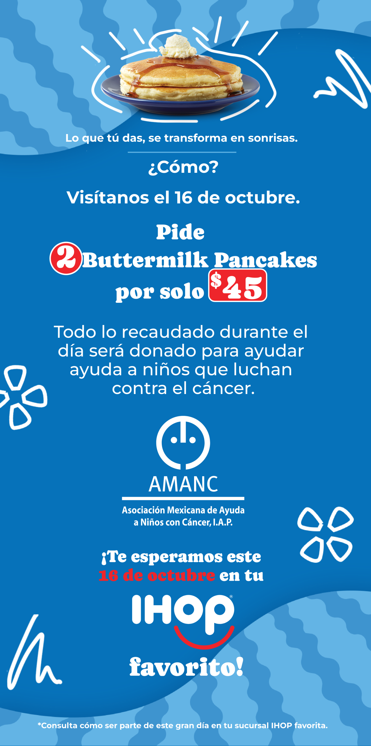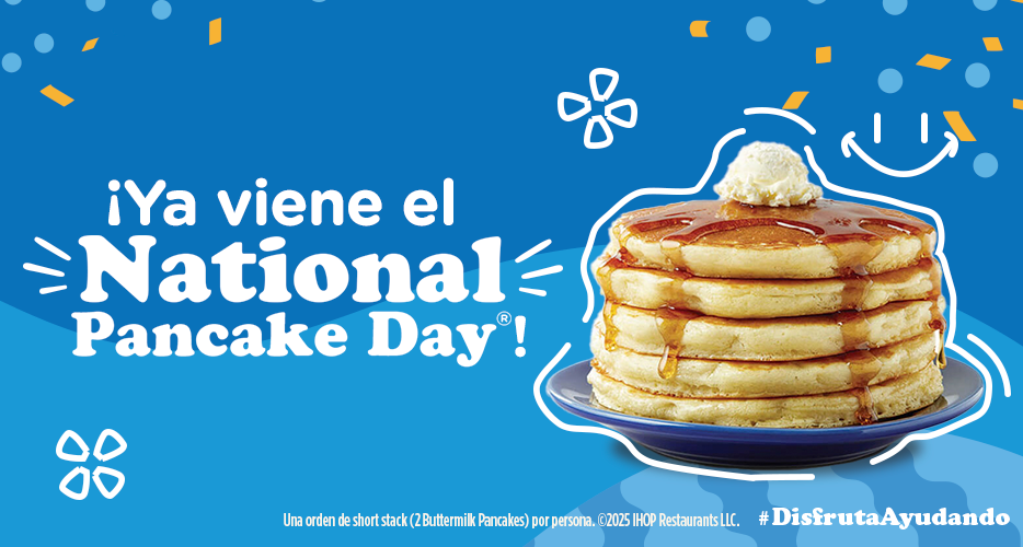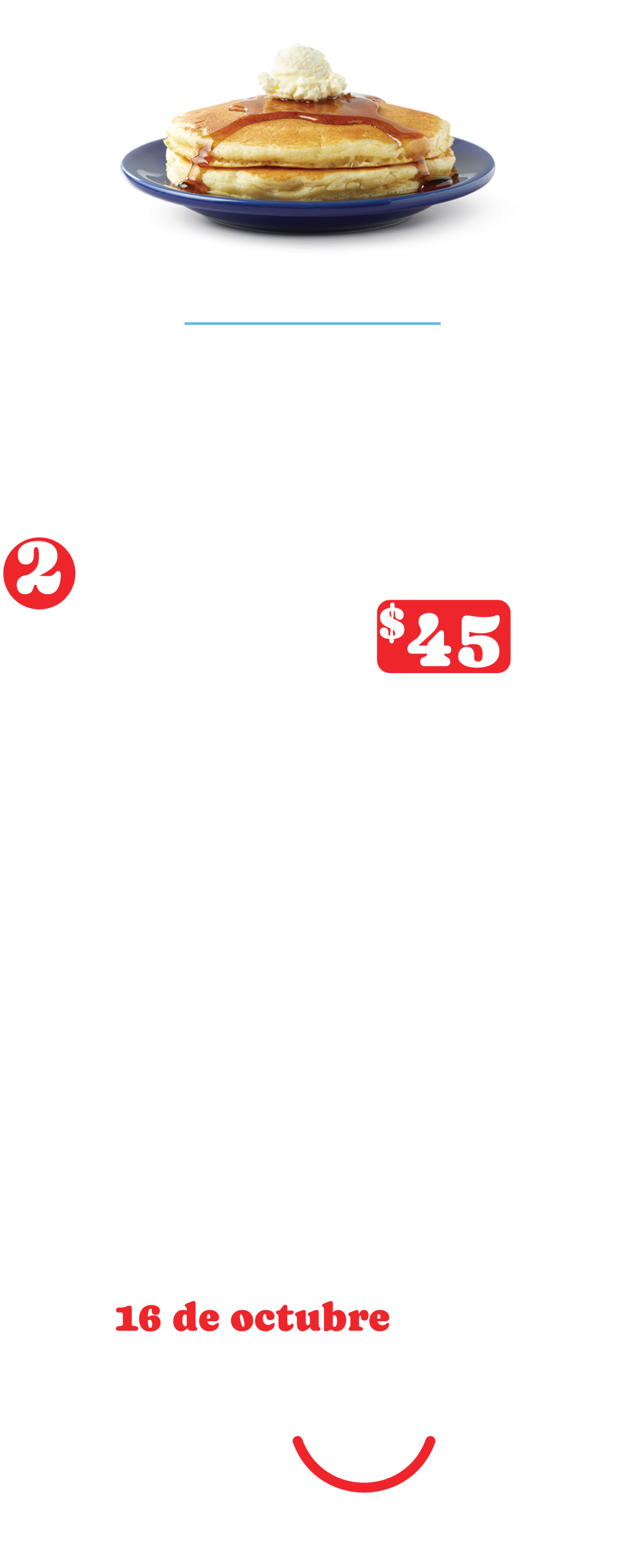 Promoción válida para consumo en restaurante en todas las sucursales de la República Mexicana. Una orden de short stack (2 Buttermilk Pancakes) por persona.